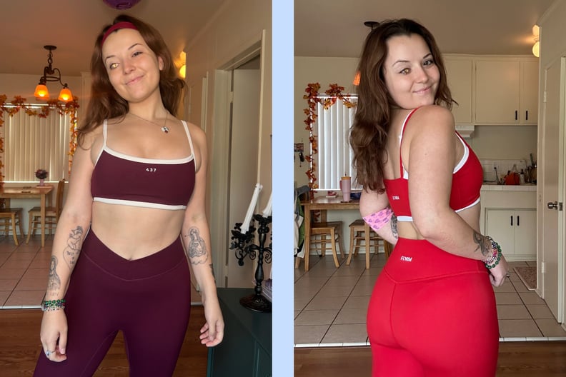 Do not fear the micro-bra. While it may offer a bit less coverage than I'm used to, this set from 437 looks incredibly flattering. I'm especially fond of the high-waisted v-waistband on the leggings (and yes, it stays in place even while you work out). These leggings are on the soft side, and I'd definitely put them in the "butt lifting" category, with v-dip back detailing that'll distract anyone on the treadmill behind you. As a health and fitness editor, I'll add this is also one of my favorite colorways in my entire collection (and I've already received compliments IRL). — Chandler Plante, Staff Writer + Social Producer