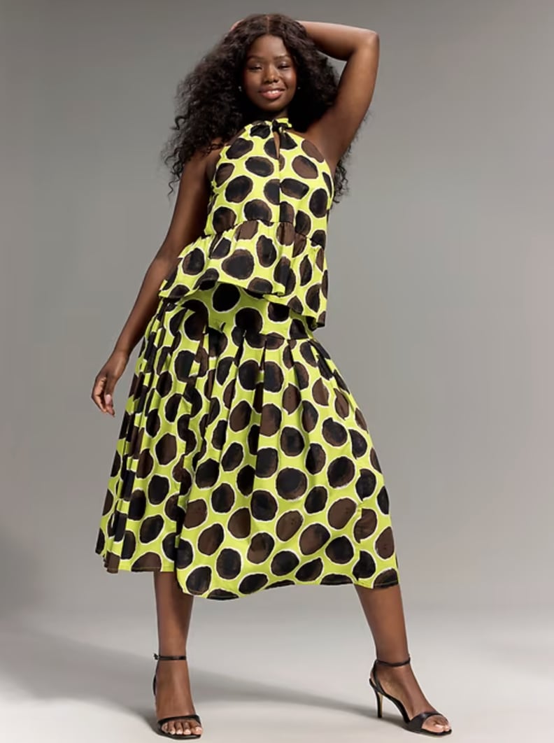 BFA | Sansho ScottLook no further than the launch event for inspiration. Street-style darling Chloe King is already separating the polka dot three-piece set, choosing instead to pair the scarf and skirt with a ruffle plaid crop top. Campaign star and style icon Kimora Lee Simmons takes a subtler approach, styling the striped top with olive barrel pants and a bomber jacket for a pop of color. Katie Holmes opts for structured, wide-leg jeans styled with the golden olive fitted sweater. The magic of Christopher John Rogers is sharing in his joy and reverence for fashion in a way that feels unique and authentic to you. And Rogers encourages it. "I think that's what's so fun about this collection is that there's so many opportunities to discover yourself and to try new things without feeling scared," he explains. "Being able to put the polka dot skirt with a striped sweater or something more directional back to jeans."