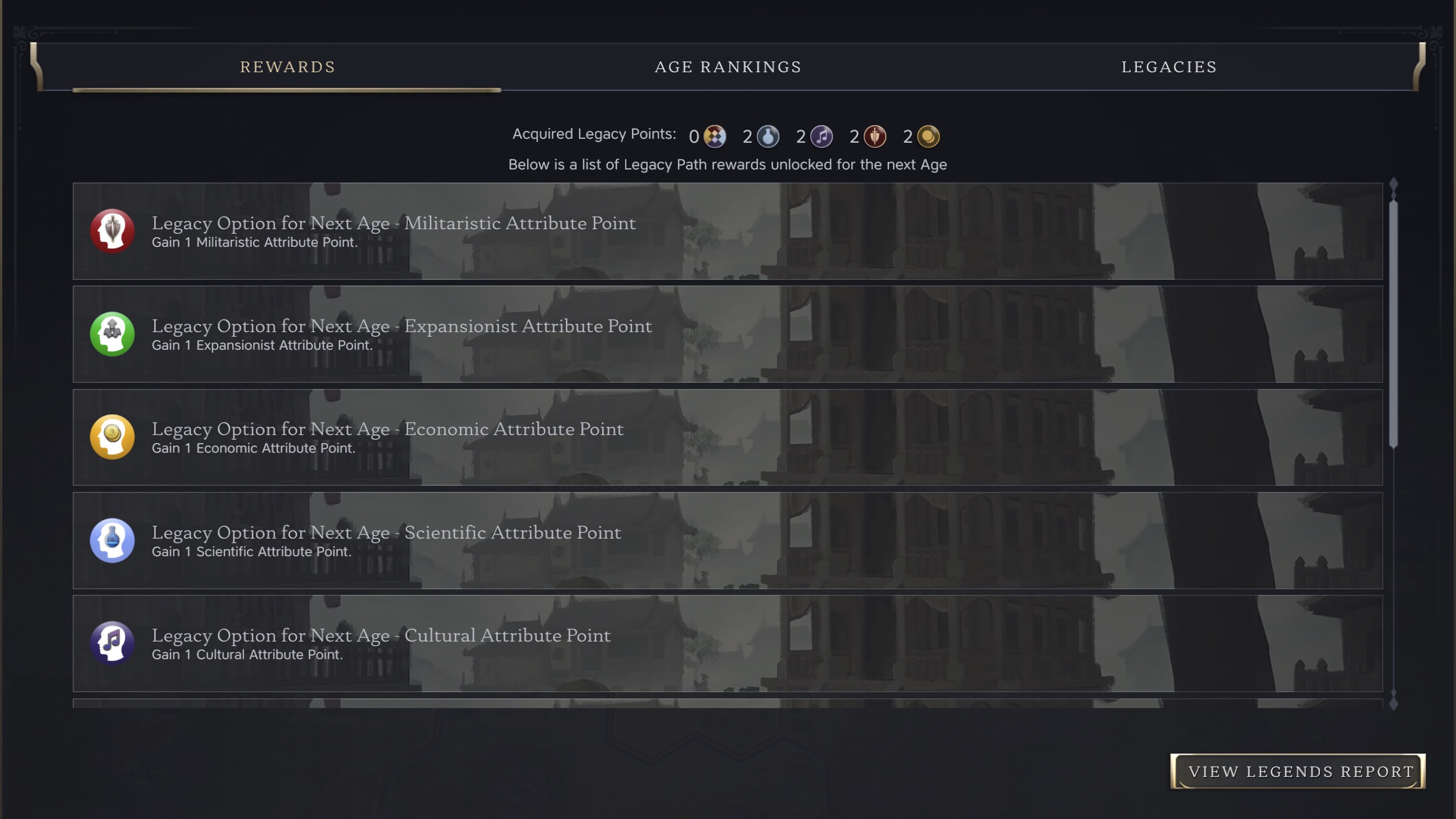 Beach explained his thinking on triumphs. “We purposely set it up so, rather than like pathways through an age, we’re looking at it sort of like as a constellation of objectives, and you choose four or five of those guide stars to move towards,” he said. “But they’re varied enough and they’re difficult enough that there’s no way you can complete all of them.”